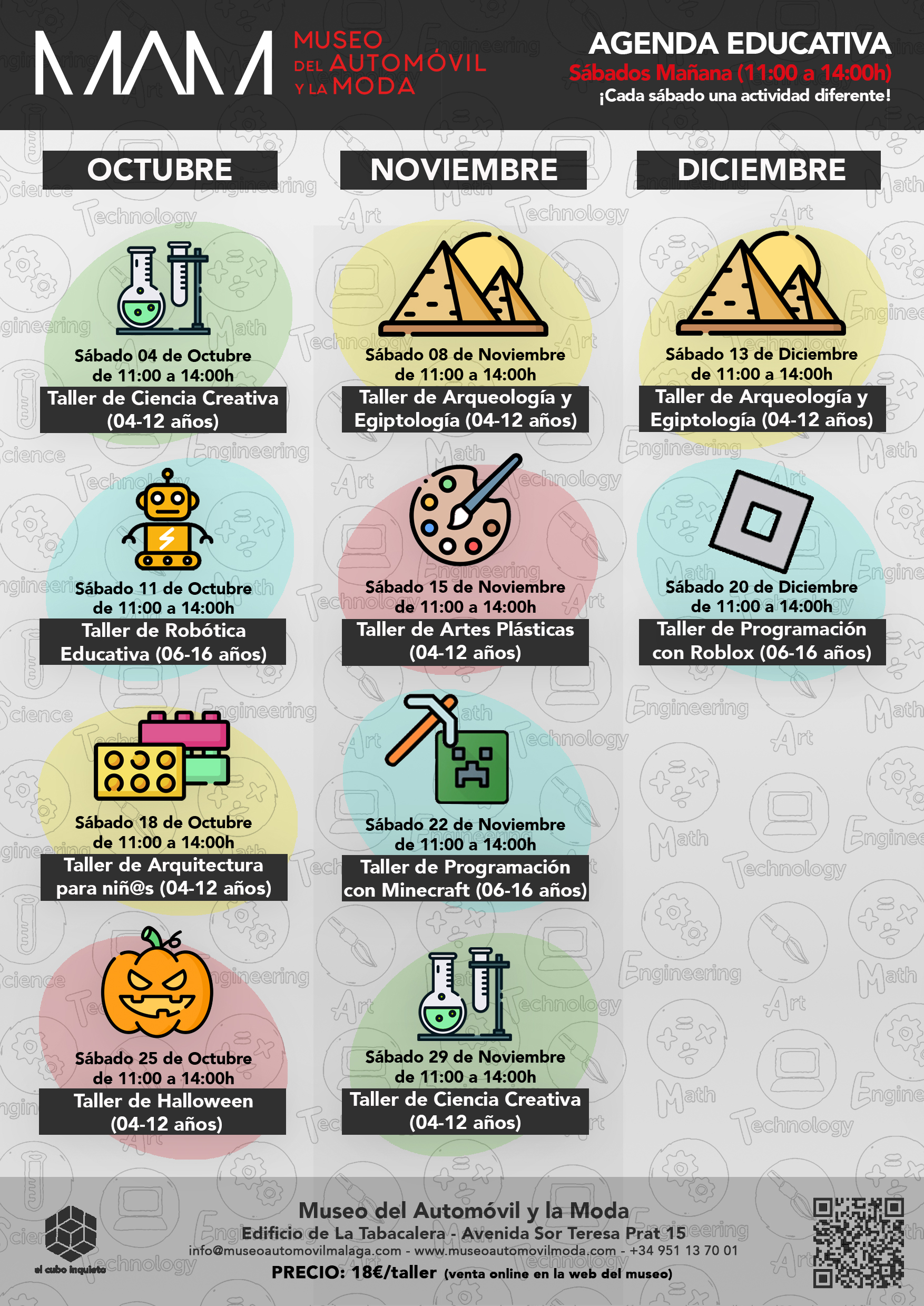Todos los sábados, los espacios expositivos y educativos del Museo del Automóvil y la Moda se convierten en punto de encuentro para los mas pequeños. ¡Cada sábado una actividad distinta!